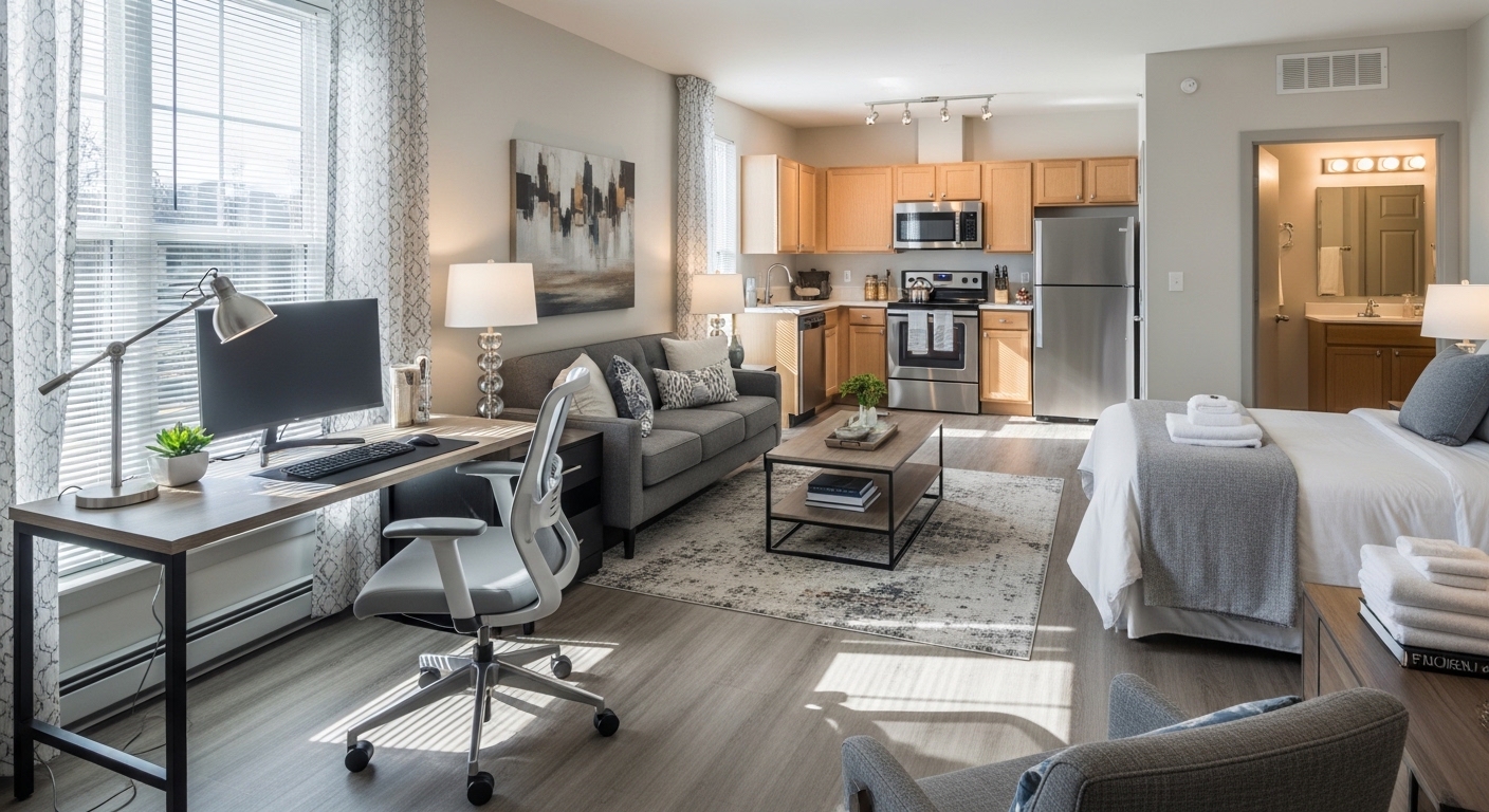sit perfectly between short-term rentals and long leases. They typically range from one to six months. This model supports housing for traveling professionals seeking consistency. In the USA, demand continues rising due to remote work and healthcare travel. Sarah, a project manager from Texas, needed corporate mid-term housing during a relocation. She avoided hotel fatigue by choosing month-to-month furnished rentals instead. Travel nurses benefit similarly, as explained in the travel nurse housing USA benefits guide. Many professionals also compare options through MiniStays USA rentals to secure reliable temporary furnished housing. This approach balances cost, comfort, and flexibility without long-term risk.